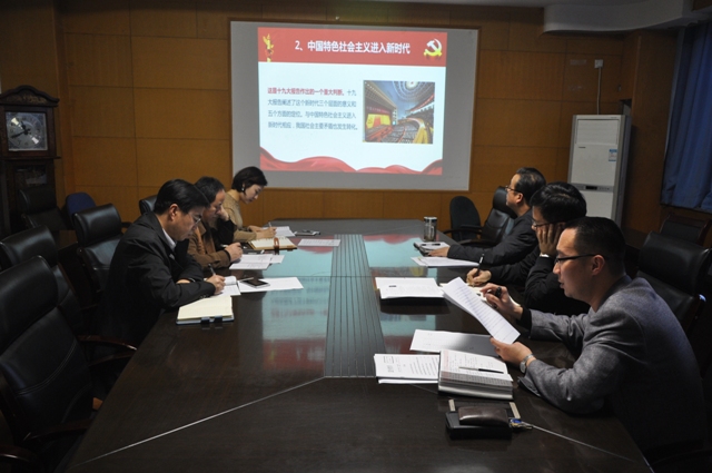高勇首先向大家传达了校党委书记刘德安在学校学习贯彻党的十九大精神加强思想政治工作座谈会上的讲话精神,带领大家学习了《陕西省高等学校院系级党组织工作规程(试行)》的内容。随后为大家上了题为《十九大报告40个新提法新举措》的党课,带领大家从新时代、新思想、新目标、新征程四个方面进行了学习。