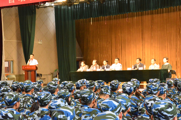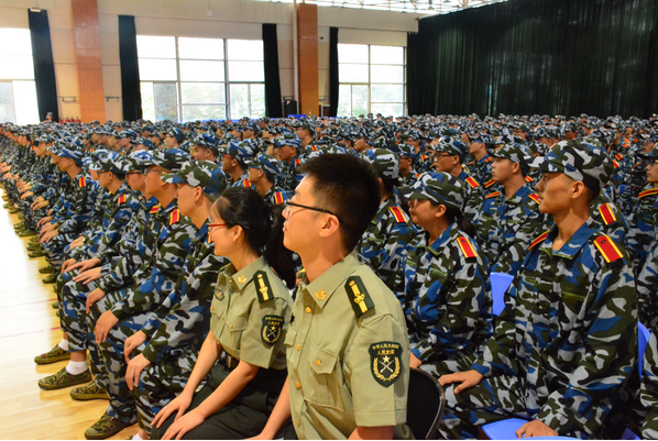 会前,在带队连长指挥下,全体军训新生合唱歌曲《团结就是力量》,向全体院领导与慰问老师展示军训成果,展现新生的精神面貌。首先,高勇书记对2017级新生表示了热烈的欢迎,对承训教官和指导员表示亲切的问候和衷心的感谢,高度赞扬了教官的施训表现,肯定了参训学生的训练成果。高勇代表学院为军训中的全体人员带来了真挚的关怀与深切的问候!接着,白华煜副院长从宿舍用电安全、防盗防诈骗,心理健康等方面向全体新生进行详细讲解,他提醒全体新生要时刻警惕,注意防范,把不安全隐患消灭在萌芽状态。最后,弋英民副院长向2017级新生详细介绍了学校学分制学籍办法,重点从学业警告,退学处理,转专业,提前毕业等方面进行讲解。他希望全体新生同学,熟知学分学籍管理办法,从新学期伊始便以良好的状态投入到大学学习中。
