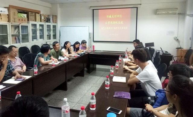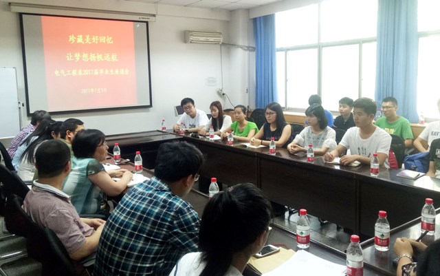首先,电气工程系主任伍文俊老师讲话,并代表全系师生向2017届毕业生送上寄语。随后,参会师生就个人的人生规划、电气工程专业的培养计划、课程设置、理论教学、实践教学等内容进行了深入的讨论。在热烈的气氛中,毕业生们踊跃发言,表达对母校的感恩之情,分享大学期间生活、学习的收获与体会,畅谈今后人生规划。大家还结合自己在校期间的学习、生活感受,对学校、学院、以及电气专业的建设与发展提出了建议。