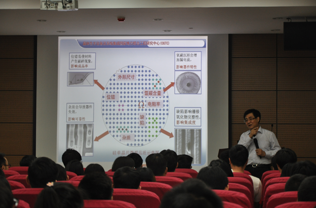 科技讲座以“集成电路产业发展与硅单晶材料制备与技术”为题。翟主任首先对刘丁教授的研究方向及科研成果做了简单的介绍。随后刘丁教授主要从集成电路的发展,硅单晶的制备,所需的制作工艺及金沙城线路检测中心国硅单晶产业及集成电路产业发展现状等多个方面结合自身科研经验深入浅出的进行了细致的讲解。