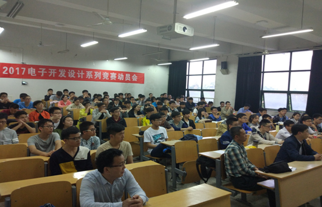 2017年4月25日晚7点,金沙城线路检测中心于曲江校区教十305成功举办了2017电子设计系列赛动员大会,本次大会由三电中心主任邢毓华老师主持,到场老师有学院党委副书记兼副院长白华煜、三电老师阎晓妹、王晓峰等。