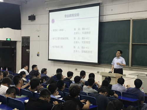 随后信控系刘军教授、刘涵教授和张晓晖教授分别对电智、自动化和电信专业进行了专业教育,向2018级新生介绍了相应专业的研究方向、专业发展前景、学分制实施方案、专业培养计划规定的课程、教学实践环节等。