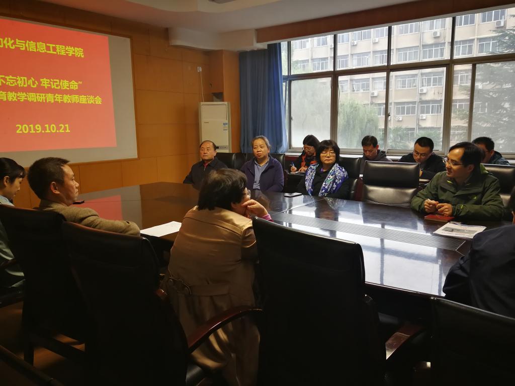 金沙城线路检测中心于2019年10月21日下午在教五楼311会议室召开了“不忘初心、牢记使命”本科教育教学调研青年教师座谈会。学院教学委员与学院近年来新引进的教师参加了会议。会议由弋英民副院长主持。